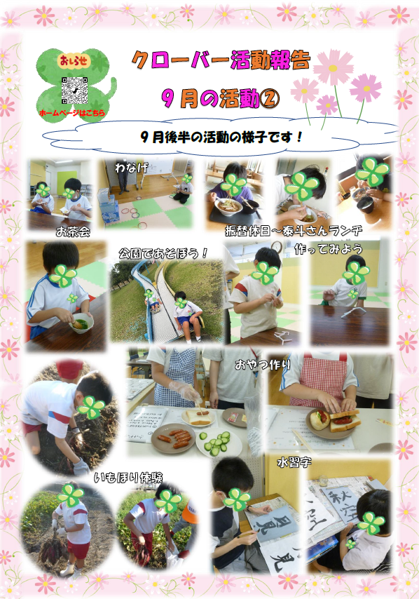 16.17日のおやつ作りは、ホットドッグを作って食べました☆18日は水習字で秋の言葉を書きましたよ!19日作ってみようでは、ストローと輪ゴムを使って暴れるストローくんを作って遊びました♪