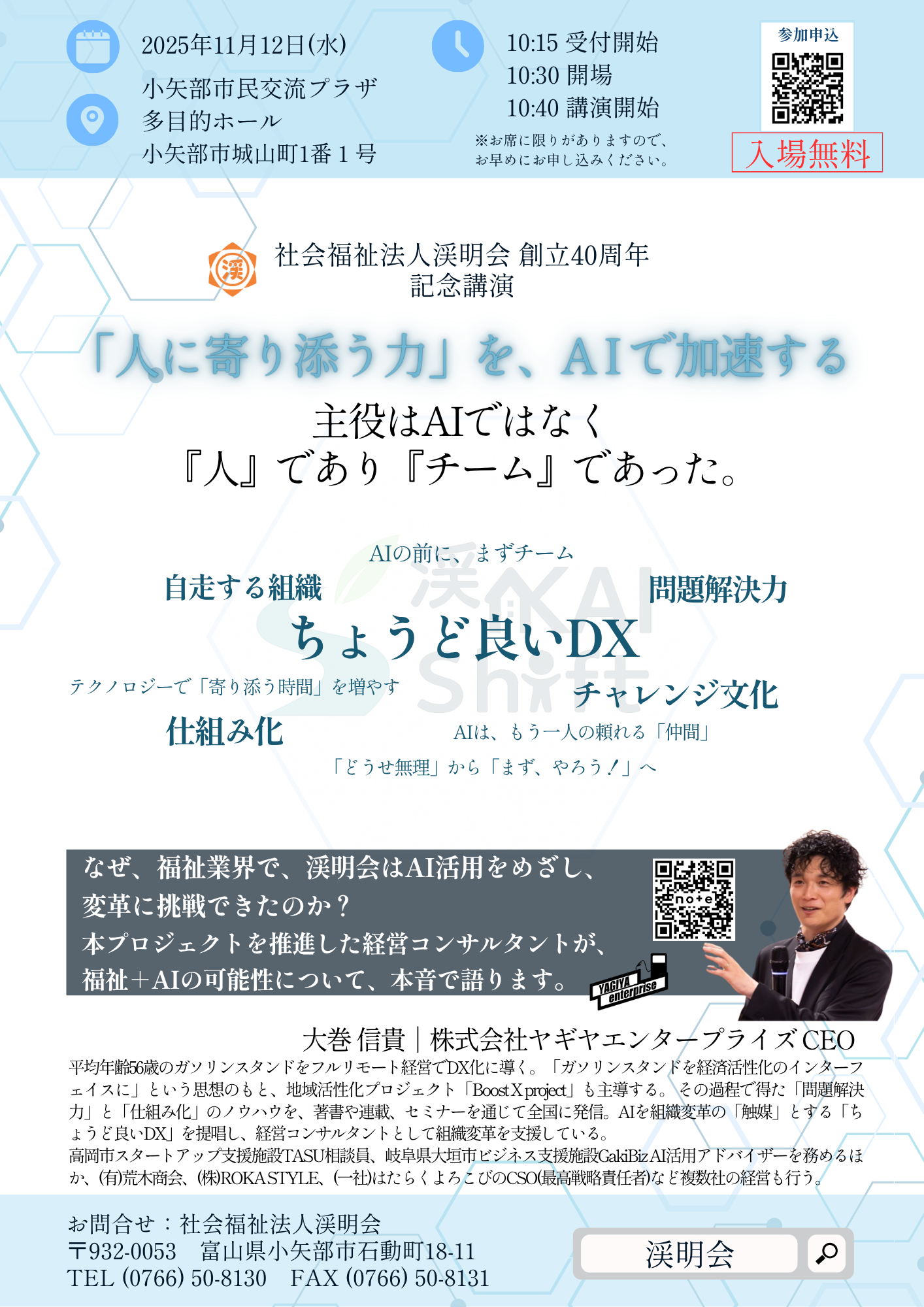 さて、2025年11月12日、小矢部市民交流プラザにおきまして、創立40周年記念講演を行います。どなたでもご参加頂けますので、下記よりお申込下さい。