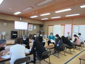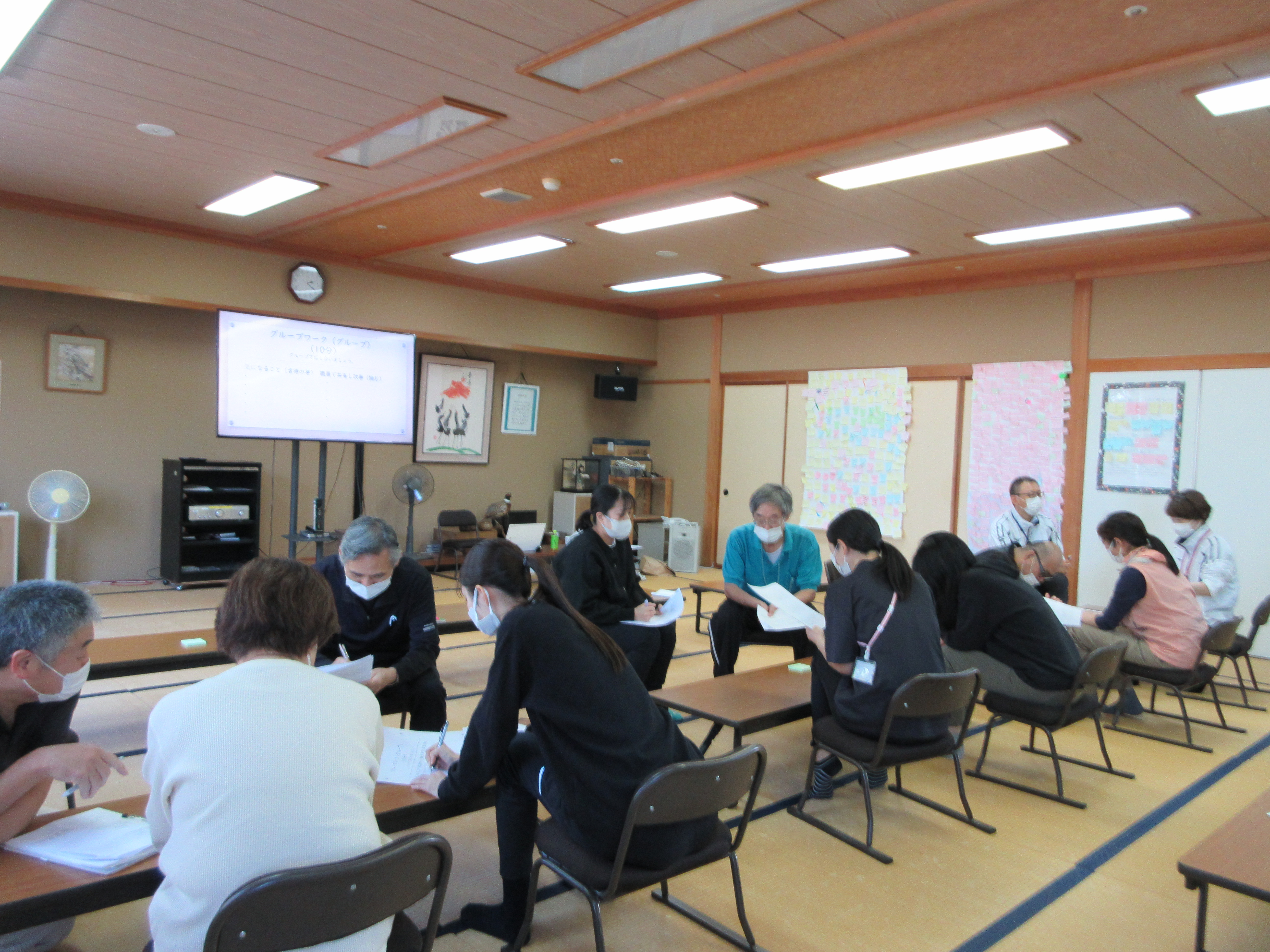 支援者がロールプレイで利用者様の立場や目線で受ける支援の内容について考えました。そしてグループワークを行い。支援者の”ちょっと気になる対応”が虐待の芽となるのではないかということを職員の中で話し合い共有しました。