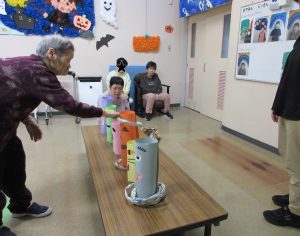 2025/11/10 あすなろ 「ハッピー☆ハロウィン」 10月31日、あすなろ東ではハロウィンにちなんだ輪投げゲームを行いました。 輪っかを3つ入れると、美味しいおやつが貰えます♪ 「えいっ」「それっ」と皆さん何度も挑戦して上手に入れることができていました!!