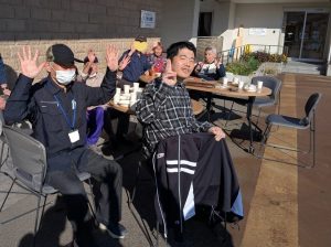 「作業、頑張っとるよ」「あ、帽子にトンボが留まってる!」