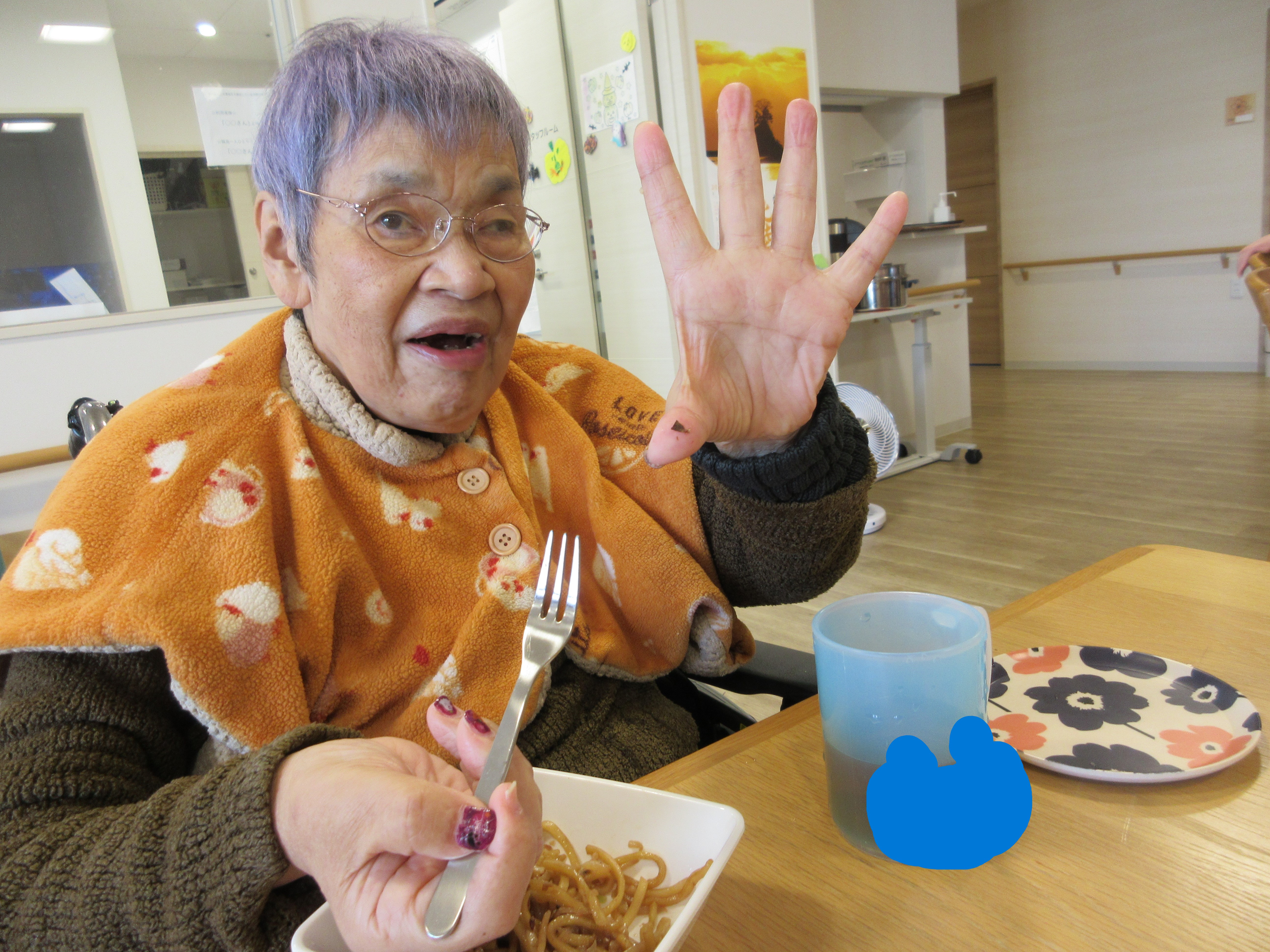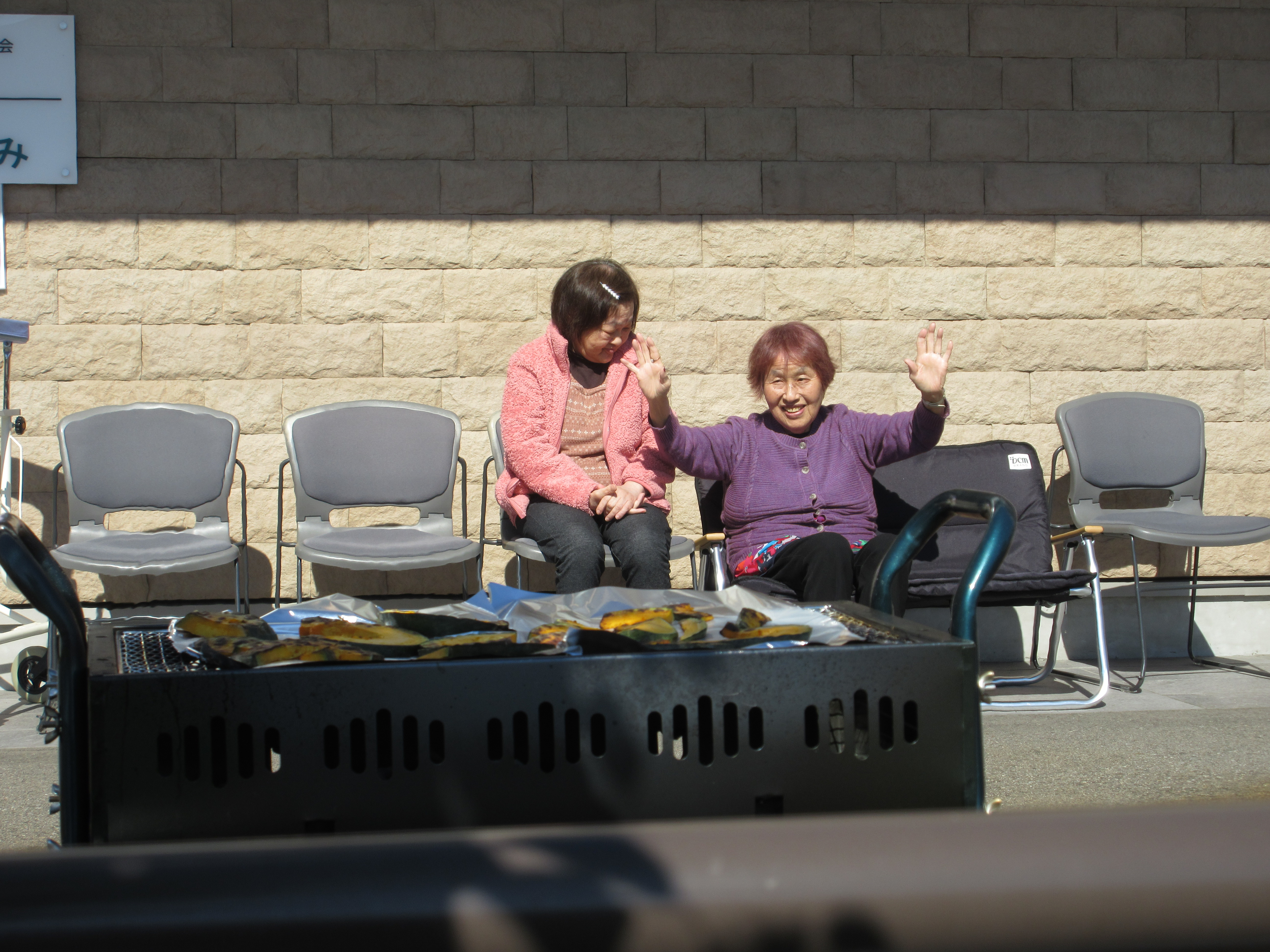 交流会に参加できなかったホームこごみの方は、事業所内で焼きそばや焼き芋をおやつとして食べました。お腹いっぱいになり、夕食は少ししか食べられませんでしたとさ・・・。
