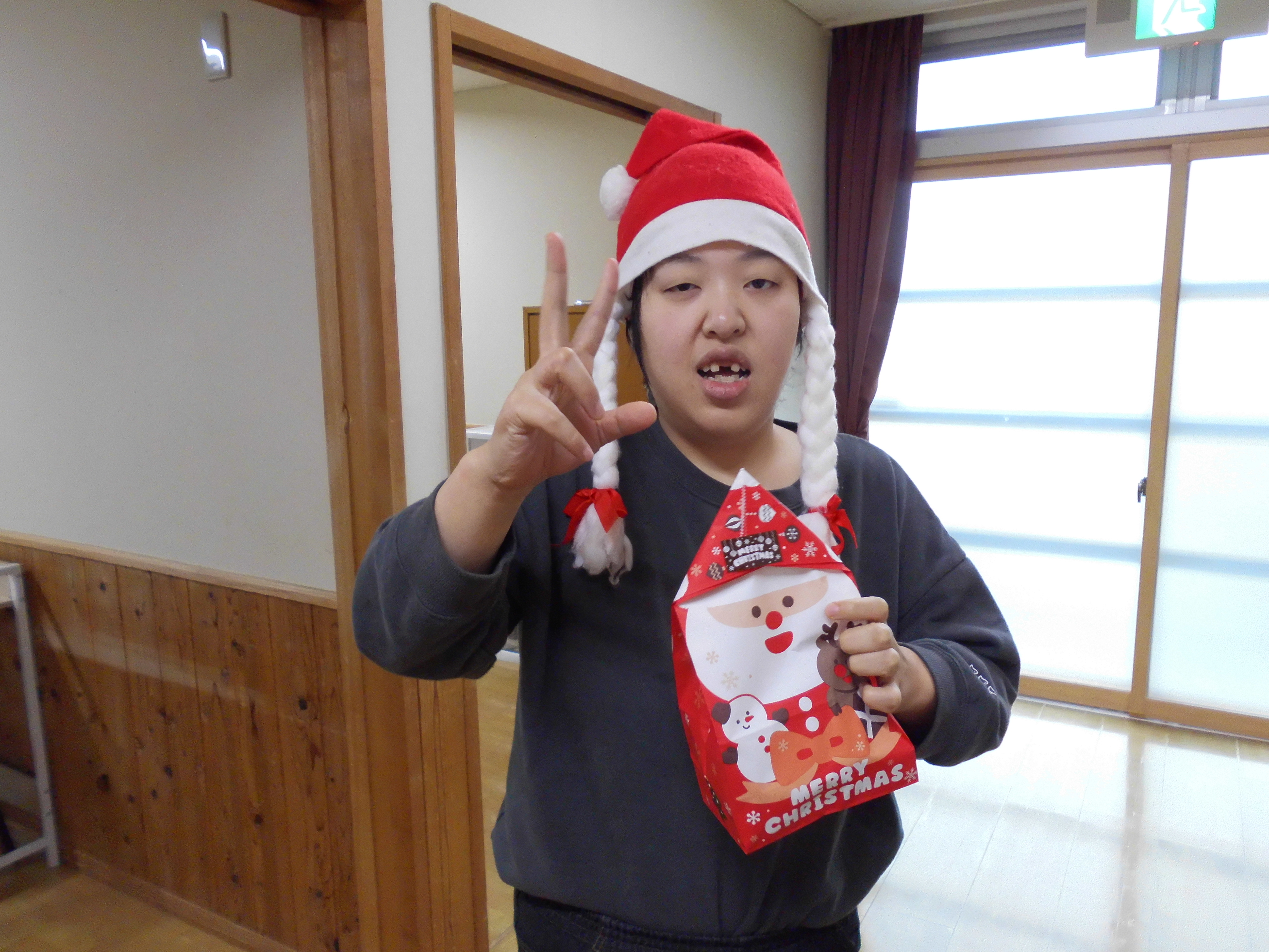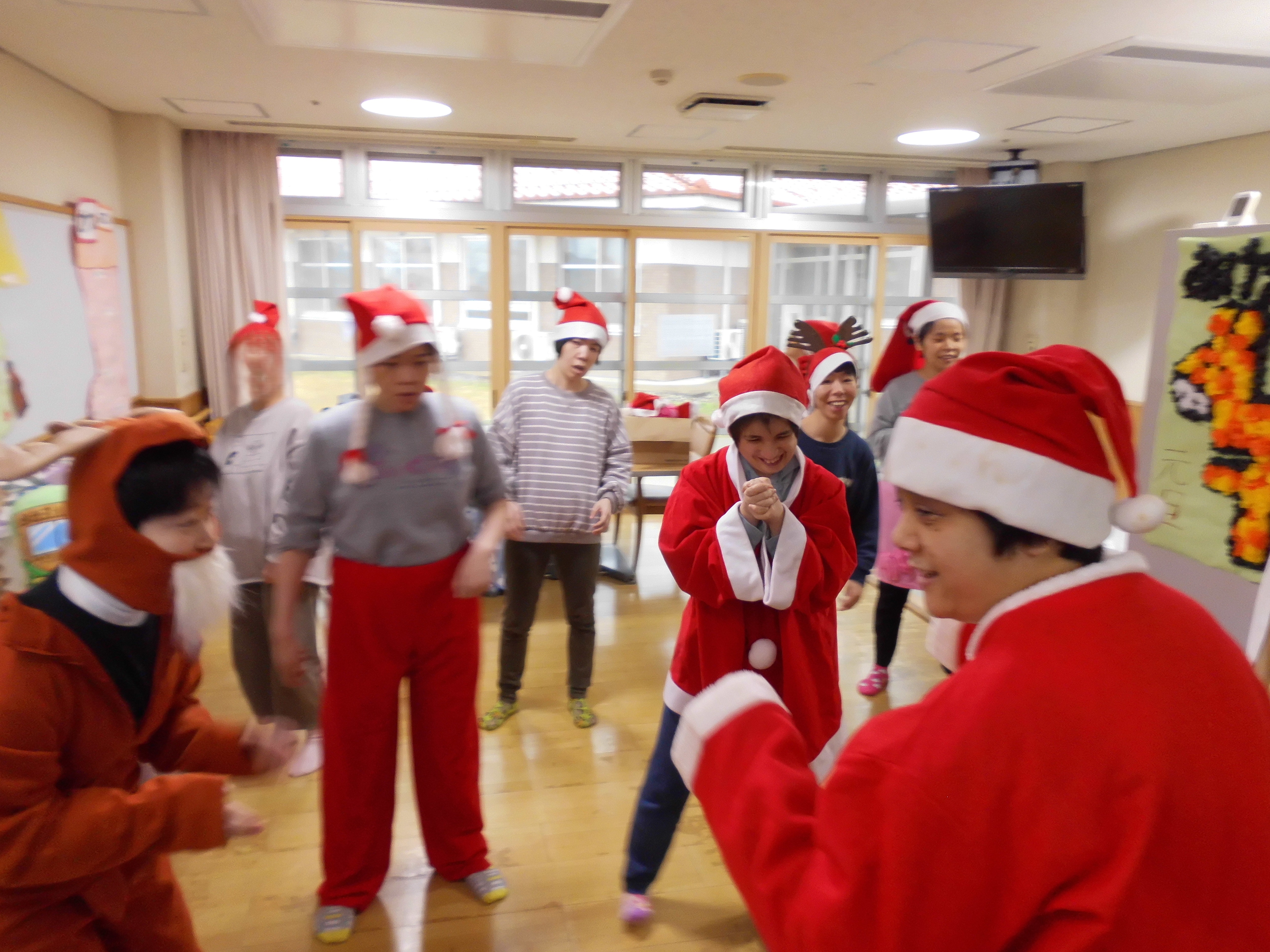 2026/01/06 あおぞら 「クリスマス会」 大好きなクリスマスの季節がやってきました! 12月25日、みどりの通りのクリスマス会では、サンタクロースやトナカイになりきってジングルベルのダンスです♪いろいろなサンタクロースがいます。あらあらトナカイさんも元気いっぱいです。 お菓子のクリスマスプレゼントを貰って大満足でした!!