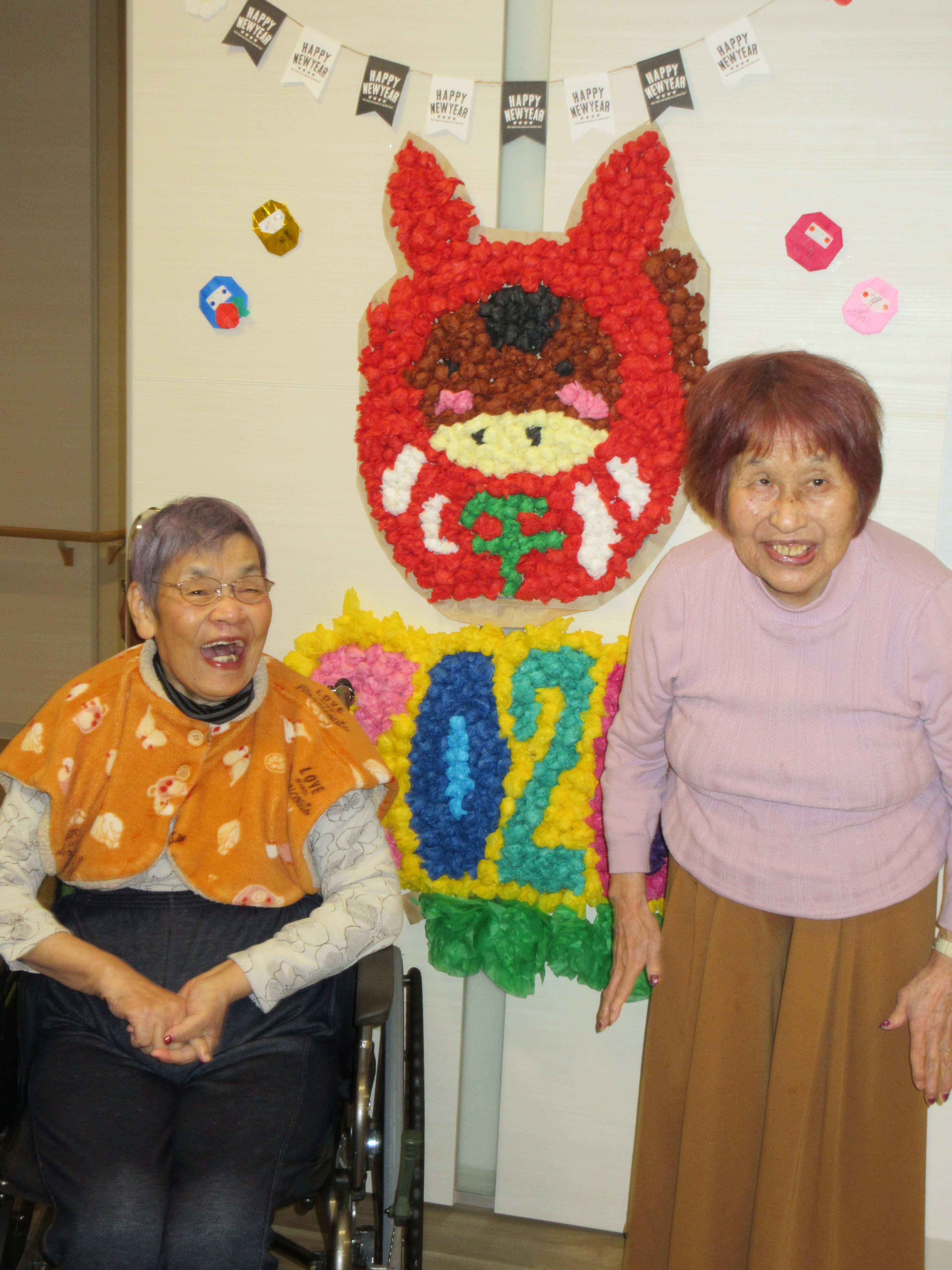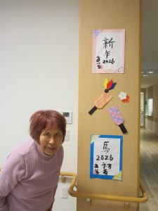 2026/01/19 ホームこごみ ホームこごみ 年始の様子 2026年が始まりましたね。 昨年はいろいろな皆様にお世話になり、大変感謝しております。 今年は『少しでもお世話になった恩返しができる年になれば』と考えておりますが、きっとそれ以上にお世話になることが多いように思いますので、 お力添えの程、よろしくお願いいたします。 今年は午年です。世界中の皆様にとって平和で、何事もうまく行く1年となりますことを祈っております。 写真は、午年の壁面装飾と書初めです。皆さんが協力して一所懸命に作りました。