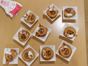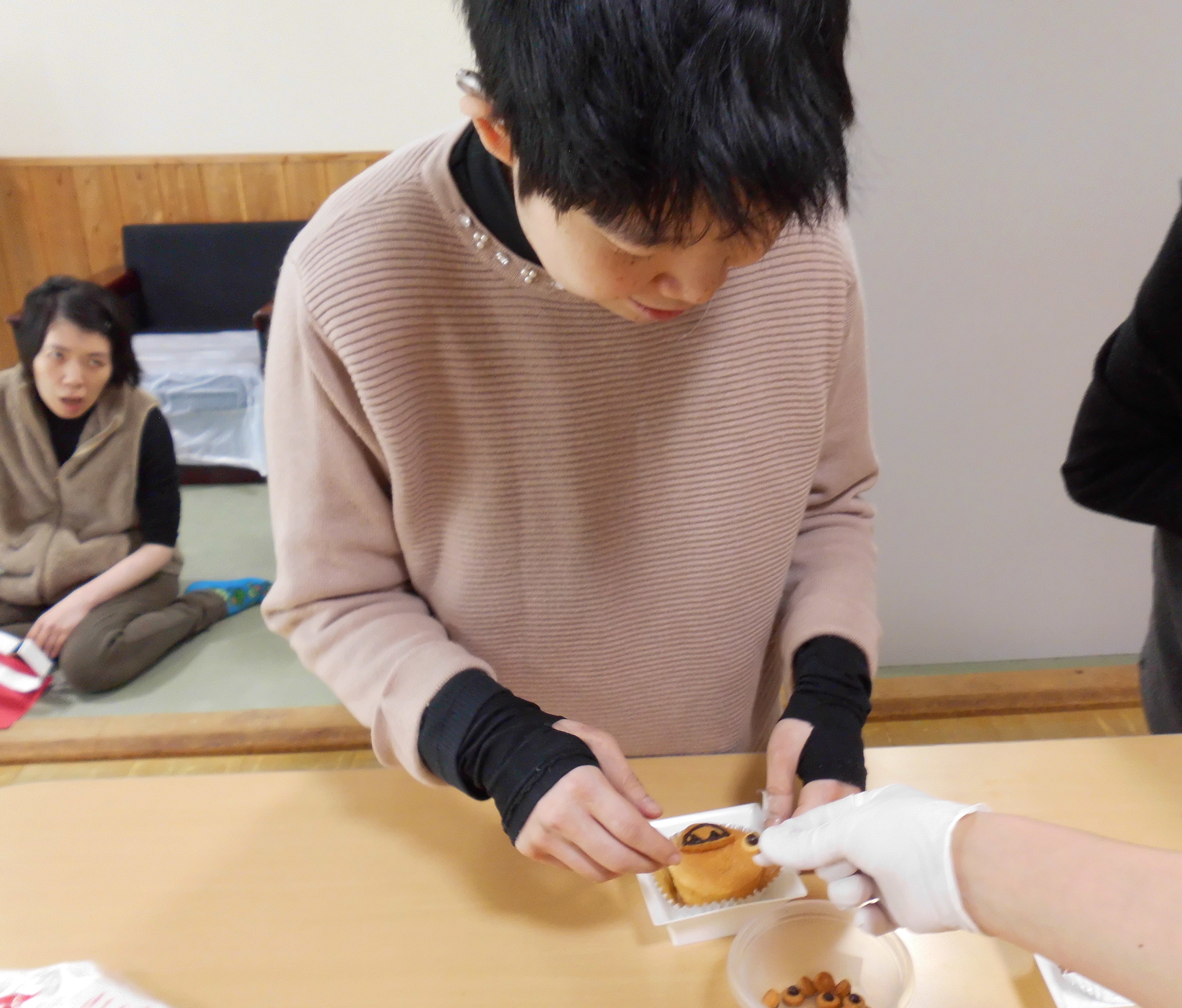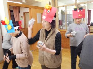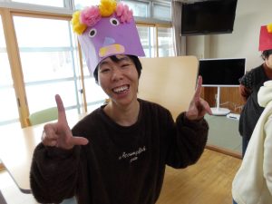 2026/02/12 あおぞら 「節分豆まき・鬼ケーキ作り」 2/1(日)、節分豆まきを行いました。みんなで手作りした鬼のお面をかぶり、新聞紙を丸めた豆を「福は~うち♪」とまきました。沢山の福が来ますようにと願いました。 豆まきが終わると「鬼ケーキ作り」です。菓子工房メルヘンから購入した鬼ケーキ&パーツで、鬼の顔を土台にしたクッキーに角や目、口をデコレーションしました。個性あふれる色々な鬼ができました。 さぁ、鬼退治だ!ぱくっ!!美味しい鬼ケーキでした。