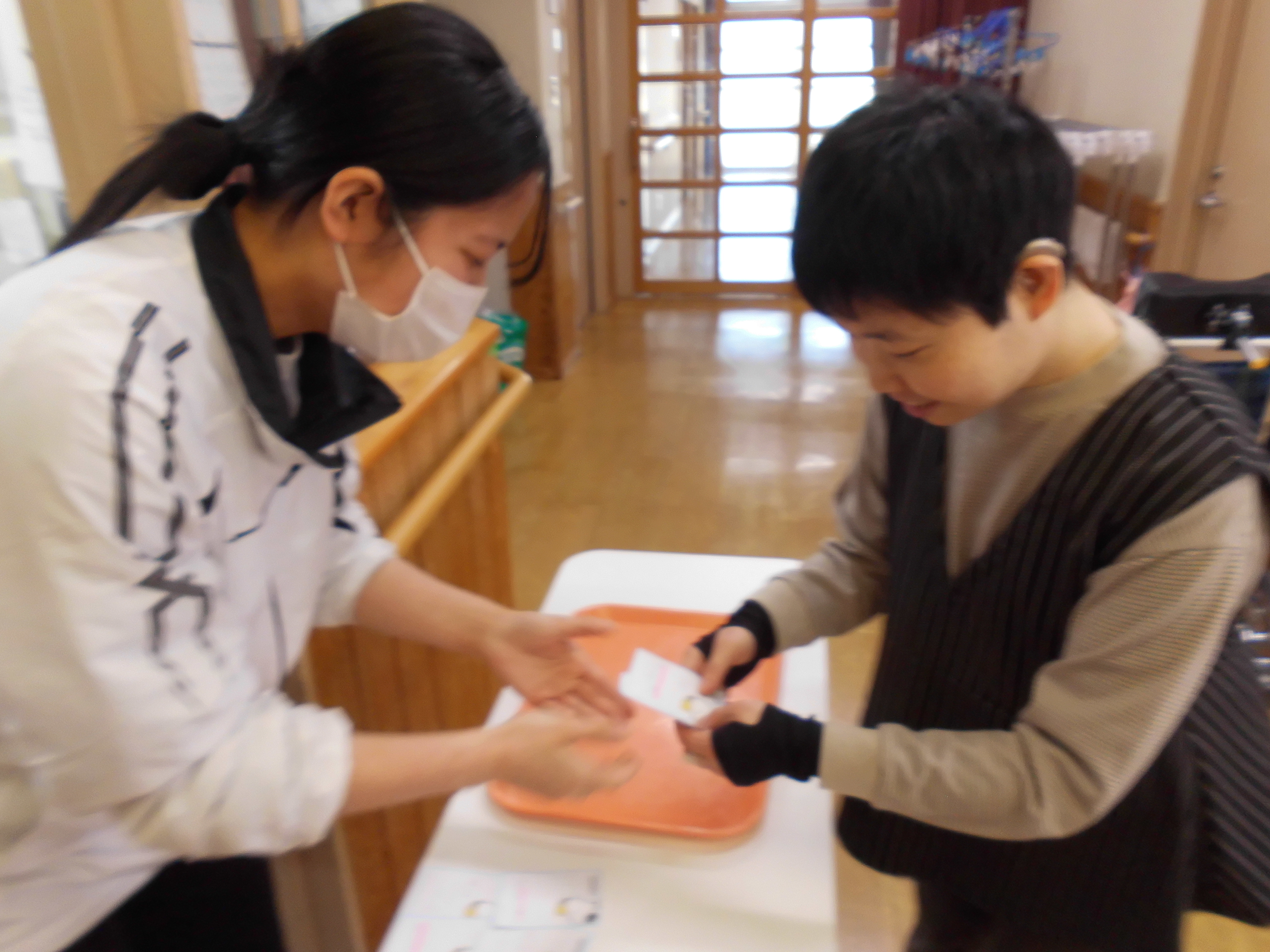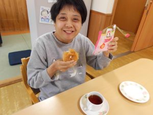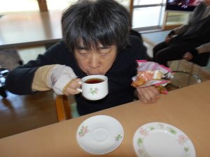 2026/03/13 花椿 「花椿カフェ」 3/1(日)、みどりの通りでは「花椿カフェ」をオープンしました。 カフェの店員(職員)にチケットを出して席で待ちます。しばらくするとウエイター(職員)がドリップしたコーヒーとひな祭りシュークリームを運んできます。花椿カフェで飲むコーヒーの味はいつもと違うかな?ちょっとお出かけ気分のティータイムでした♪